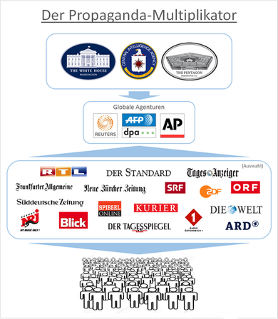 Объектом исследования стала информация о сирийском конфликте в Германии, Австрии и Швейцарии, продолжает Freie Welt. Эксперты пришли к выводу, что большую часть сообщений немецкие СМИ заимствуют у трех мировых информационных агентств: AP, AFP и Reuters. При этом из-за недостатка зарубежных корреспондентов немецкие агентства также вынуждены полагаться на информацию из крупных источников, отмечает издание.