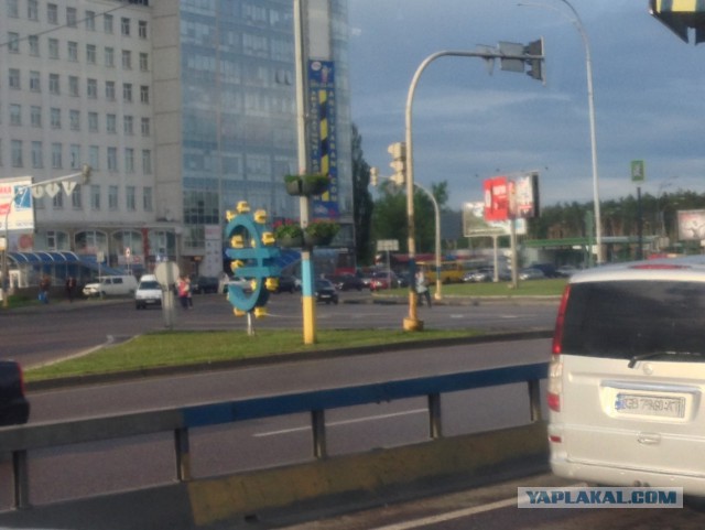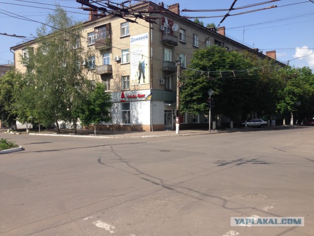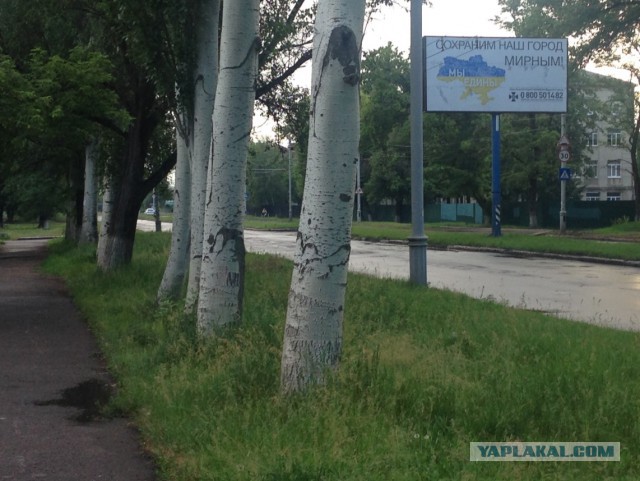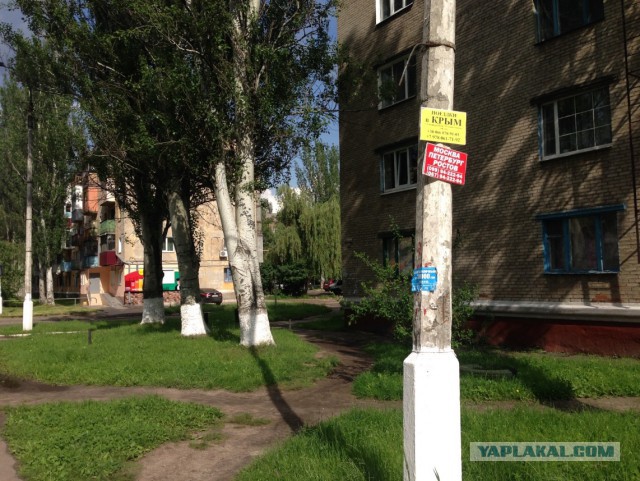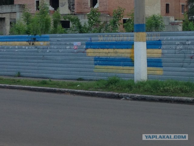 Как можно недорого напомнить жителям Славянска, что они живут на Украине? Только, чтобы недорого?! Правильно! Нужно нарисовать украинский флаг на каждом фонарном столбе.