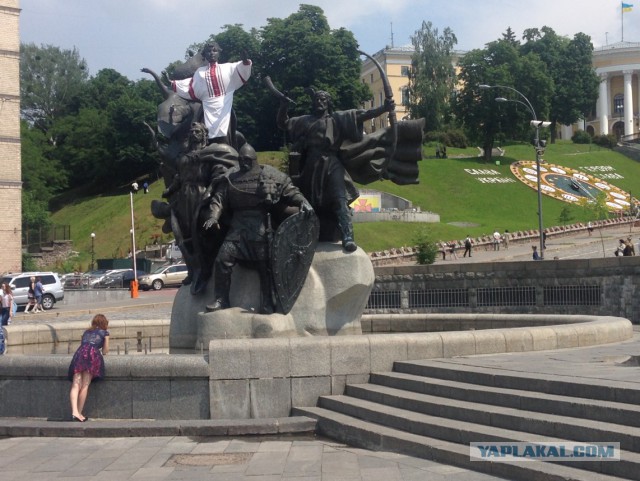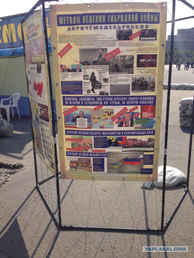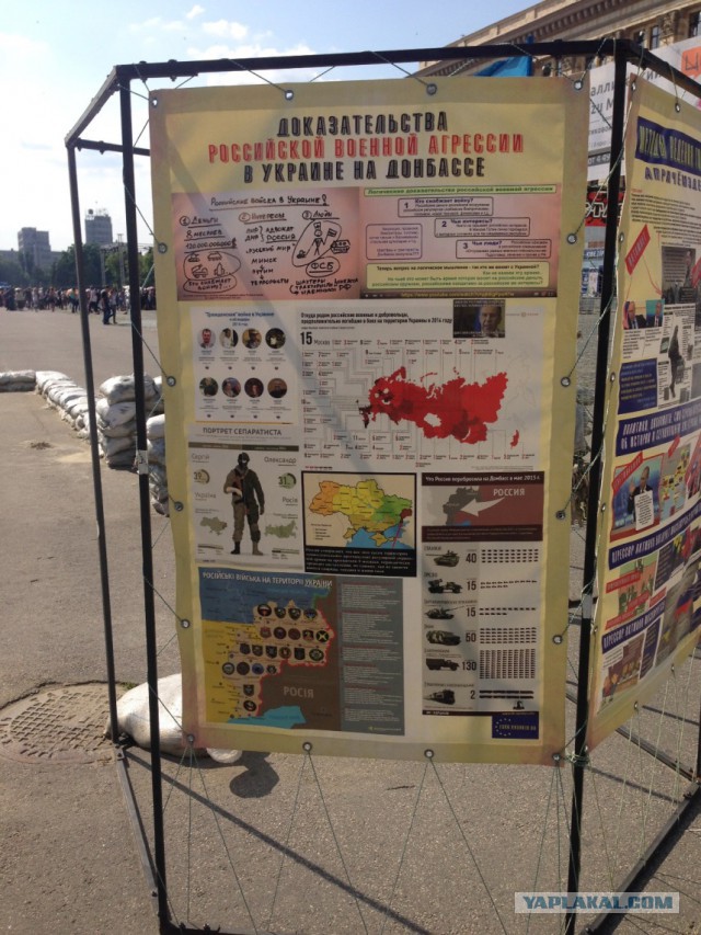 На Украине дна нет. Антироссийского дерьма на украинском ТВ накопилось так много, что оно перестало умещаться в телевизоре. Поэтому на главной городской площади организованна русофобская выставка под открытым небом. Ничего подобного я не видел ни в Донецке, ни в Крыму. В России, ясное дело, такого маразма тоже не встречал.