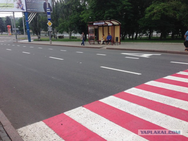 В Донецке качественная разметка на всех дорогах. Вот, буквально, на всех, которые я видел. Даже в маленьких переулках. Даже на окраинах.