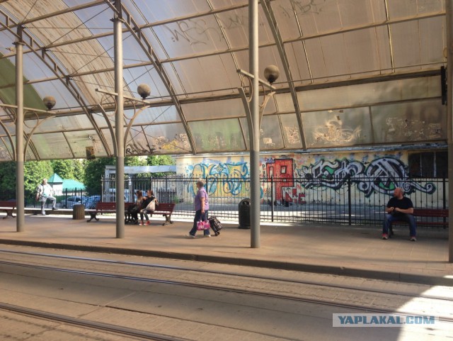 Кстати, трамвайная остановка из предыдущего абзаца была вполне себе современной. Правда, опять вся в граффити.