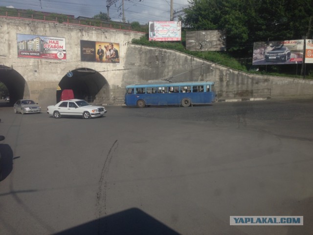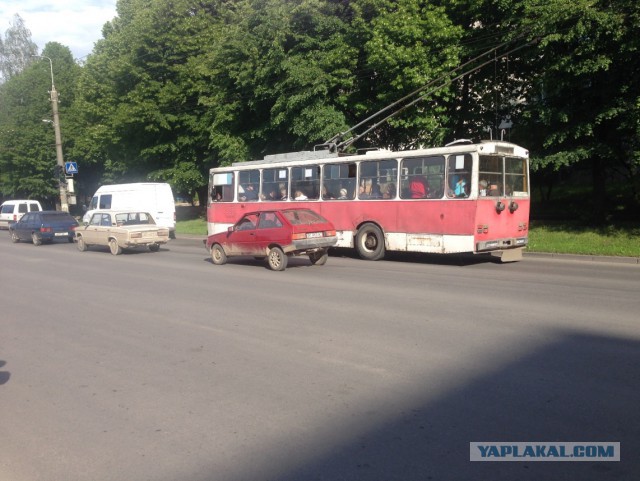 Троллейбусы Тернополя продолжают слать пламенные приветы из советских 60-х годов. Стоп! Что-то я увлекся… Мерседесы же в Тернополе тоже есть! Вон, рядом с троллейбусом.