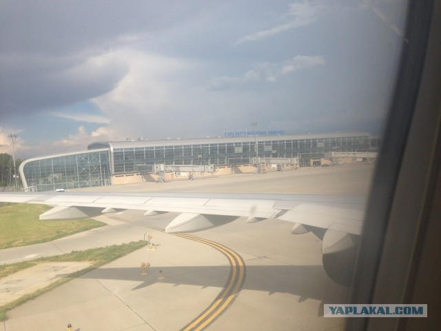Дальнейшая сцена напомнила ситуацию на корабле из стиха Маяковского о советском паспорте. Пограничница как-то неуверенно пролистала страницы. Потом посмотрела на свою коллегу. «Российская Федерация», — сказала она с подтекстом «Что делать-то?». Аэропорт Львова красивый и современный. Только там очень мало самолетов и пассажиров. Помимо нашего борта я заметил, только небольшой самолетик польской авиакомпании.