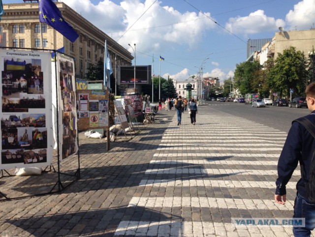 Но вот, что мне больше всего понравилось. Выставка развернута в самом центре города в хорошую погоду. Стенды стоят рядом с двумя крупнейшими станциями метро. Мимо идут тысячи человек, но НИКТО НЕ ОСТАНАВЛИВАЕТСЯ. Я специально прошел мимо еще раз через полчаса. Потом еще через полчаса. Никого. Жители Харькова не хотят жрать это дерьмо.