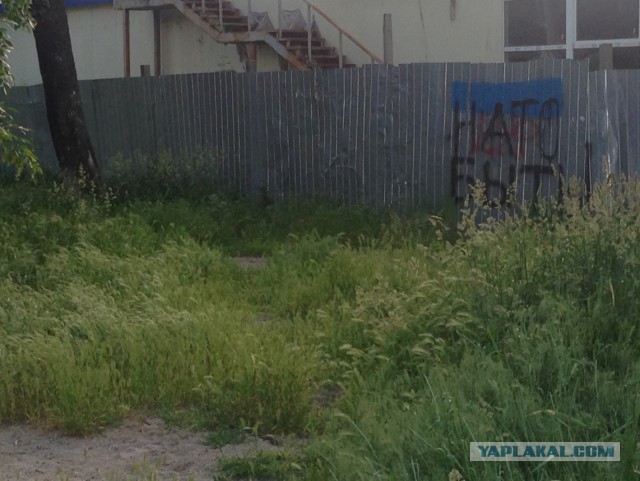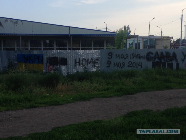 Первое, что видит человек, который приехал в Славянск – граффити на заборе на привокзальной площади.
