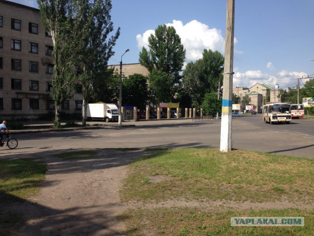 Как я уже писал ранее, количество автобусных остановок в городе, выкрашенных желто-голубой цвет на Украине обратно пропорционально проценту украинцев в данном городе. Славянск в этом плане ненамного отстает от Харькова.