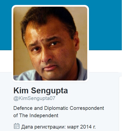 На личной странице в Twitter Сенгупта обозначает сферу своих интересов как «корреспондент The Independent по вопросам обороны и дипломатии».