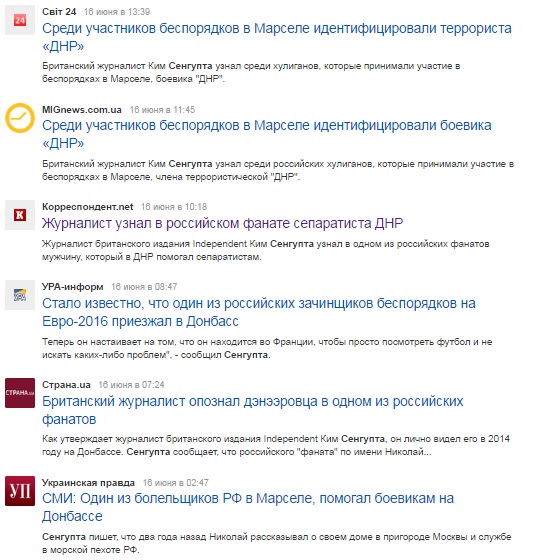 Разумеется, на вброс журналиста из Великобритании моментально отреагировали украинские СМИ, с радостью написав с десяток статей о «российском боевике, обнаруженном в Марселе».