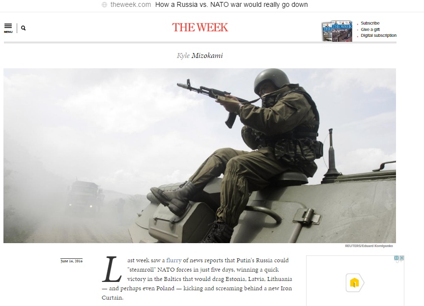 16 июня на страницах американского издания The Week была опубликована статья на тему возможного развития событий в случае эскалации напряженности в отношениях между Россией и Западом и перехода их (отношений) в стадию открытого вооруженного противостояния.