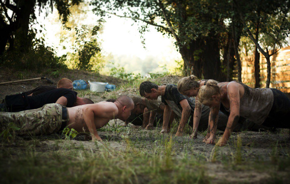 Тренировка молодняка происходила с элементами, которые используются при подготовке спецподразделений НАТО. Вода, песок и дым - это то, что имело непосредственное физическое и психологическое воздействие на юных вояк. Для войны с Российской Федерацией готовят не только парней, но и девушек.