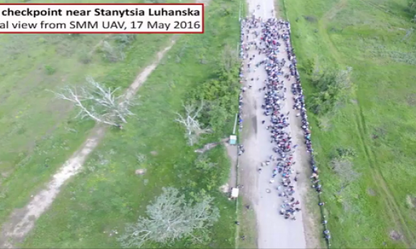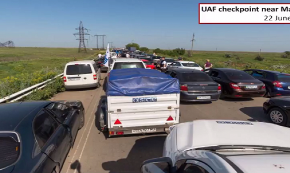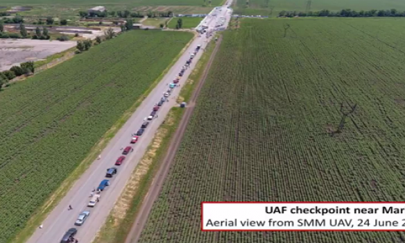 В частности, рядом с людьми, стоящими в очереди на КПВВ Марьинка, беспилотники СММ ОБСЕ зафиксировали противотанковые мины. Об этом в ходе брифинга сообщил первый заместитель руководителя Специальной мониторинговой миссии ОБСЕ Александр Хуг.