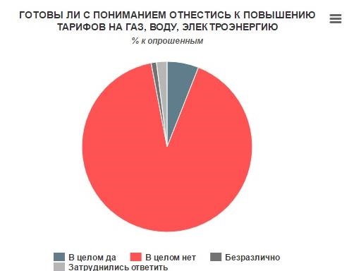 Согласно опросу, с пониманием к повышению тарифов готовы отнестись лишь 6% украинцев, тогда как не готовы — девять из десяти граждан страны (91%).