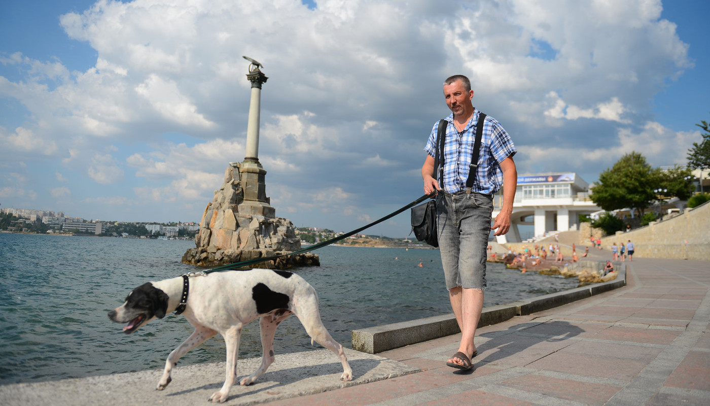 Вместе с собакой бывший комендант Семёновки иногда ходит гулять на набережную. Заметно прихрамывает. Сетует, что не может бегать. Купается с Жориком у памятника погибшим кораблям.