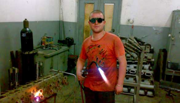 В доказательство Артём показал фотки из телефона: вот он на «кладбище» танковых двигателей, вот со сваркой.
