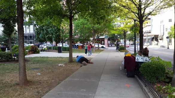 Ходят, деньги просят, в мусорках копаются, в транспорте в любом вагоне они есть. Тут в 17 всё закрывается, по выходным ничего не работает. Да и днём все по офисам сидят. Только бомжи ходят и лежат везде. Ощущение, что ты в городе после химической атаки.