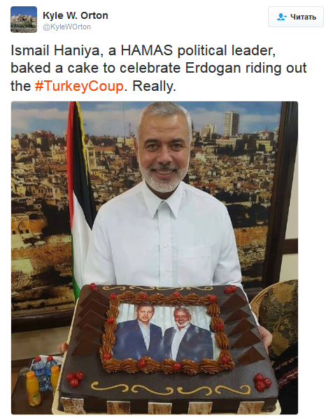 Лидер палестинского исламистского движения Хамас Исмаил Хания своебразно выразил радость от победы Эрдоган над мятежниками, пытавшимися утроить военный госпереворот.