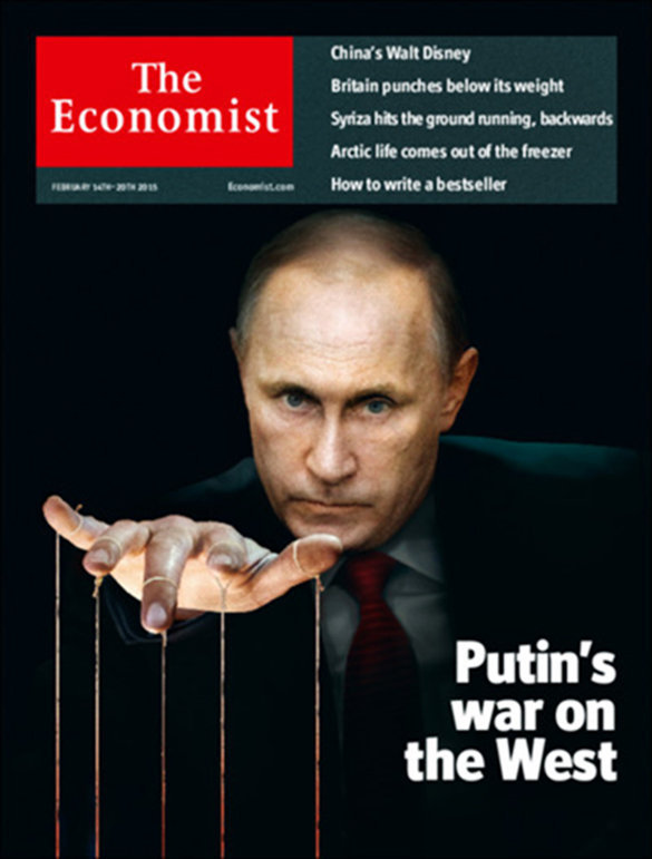 Другая версия обложки с лидером России может изображать Путина в качестве угрюмого, неулыбчивого диктатора. В глазах читателей должен немедленно встать образ России как «печального пустыря, покрытого снегами и льдом».