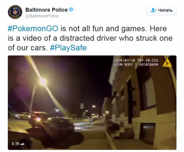 Догнав внедорожник, полицейские первым дел поинтересовались о состоянии водителя, который только что попал в аварию. Одно тот только произнёс: «Вот что я получил, играя в эту дурацкую игру». Как утверждают стражи порядка, за некоторое время до аварии водитель заигрался в приложение Pokemon GO.