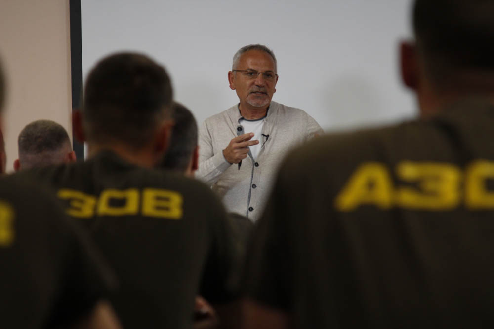 Савик Шустер отметил важность работы военных корреспондентов в современной, гибридной войне. После лекции западный пропагандист ответил на все интересующие курсантов вопросы, а таких было немало. Начальник террористической школы бандформирования "Азов" в конце встречи вручил агенту ЦРУ Шустеру первую монету школы сержантов неонацистского карбата за то, что тот поддержал карателей и поделился с ними своим многолетним опытом.