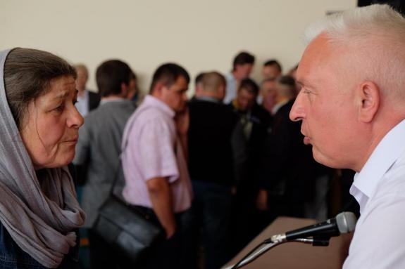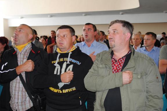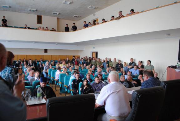 Зал, разделенный центральным проходом, постепенно наполнялся бориспольчанами: правую сторону заполнили представители УПЦ во главе с духовенством, левую — депутаты и, как выяснилось позже, противники Крестного хода, представители радикальных партий и военизированных общественных организаций.