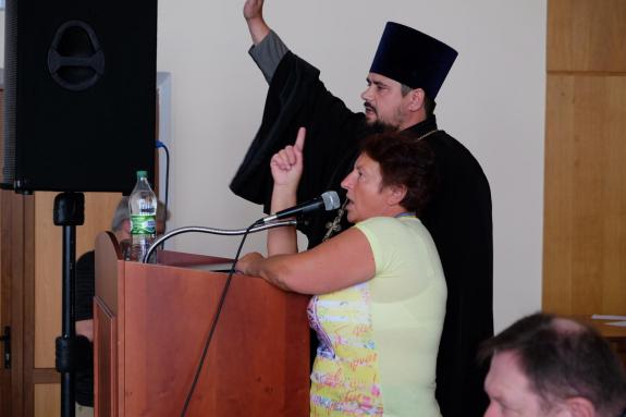 Но самое удивительное журналисты увидели и услышали, когда большая часть присутствующих покинула зал. Упомянутый депутат Я. Годунок, ратовавший за спокойствие горожан, призвал проголосовавших депутатов задержаться и составить план «препятствия Крестному ходу».