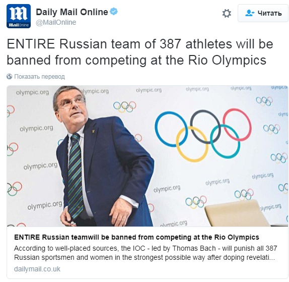 «Международный олимпийский комитет самым решительным образом накажет всех 387 российских спортсменов после откровений о государственной поддержке своей страной допинг-программы», — отмечает издание.