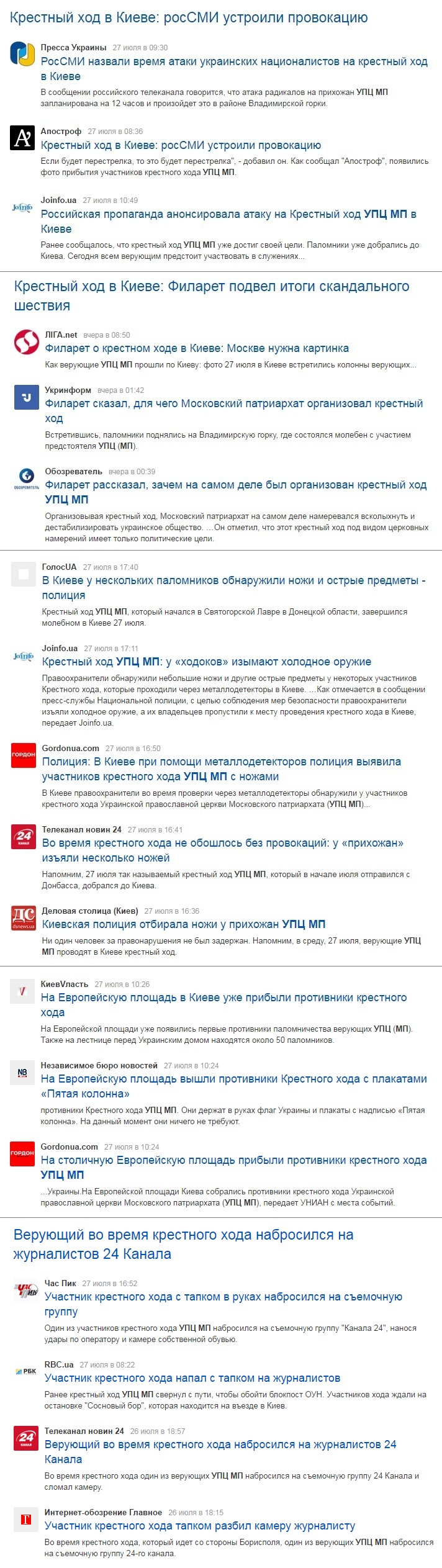 Украинские СМИ целенаправленно формируют у своих читателей впечатление, что участники православного шествия только и делали, что бросали в журналистов тапки и несли за пазухой ножи.