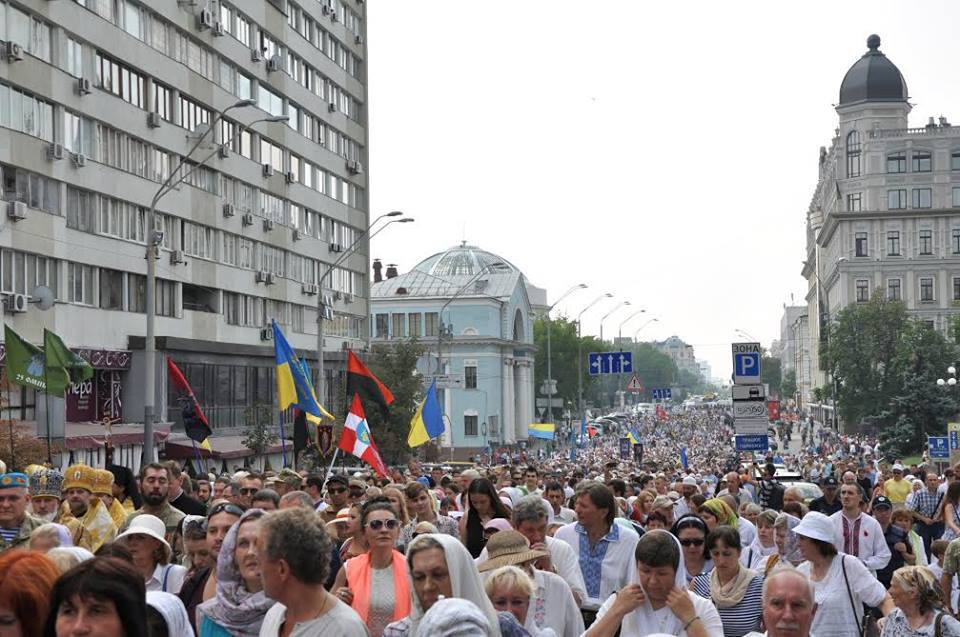 По данным Украинской Православной церкви Московского патриархата, во Всеукраинском Крестном ходе за мир на Украине, который завершился в Киеве 27 июля, приняли участие от 80 до 100 тысяч православных верующих со всей страны.