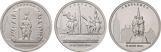 Центробанк РФ 1 августа в рамках эмиссионной программы выпустил в обращение пятирублевую монету, на которой в обрамлении двух пятиконечных звезд находится надпись «Вильнюс» и указана дата 13 июля 1944 года — день, когда Красная армия освободила Вильнюс от фашистских захватчиков. По мнению литовского дипломата, эта дата является днем, когда Красная армия «заняла» Вильнюс.