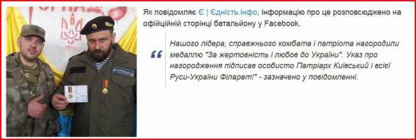 Так, в 2015 году самоназначенный «патриарх» Филарет наградил своей медалью погибшего на Донбассе грузинского неонациста с позывным… «Сатана».