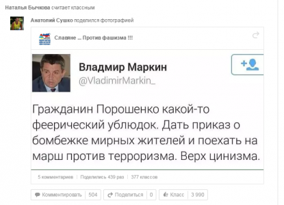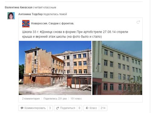 Если вы опрометчиво «лайкнули» нечто, что опровергает постулаты укроСМИ о том, что в Донецке люди ходят в звериных шкурах и живут в развалинах, проклиная ДНР, вы — сепаратист. Даже если это просто отремонтированное здание школы.