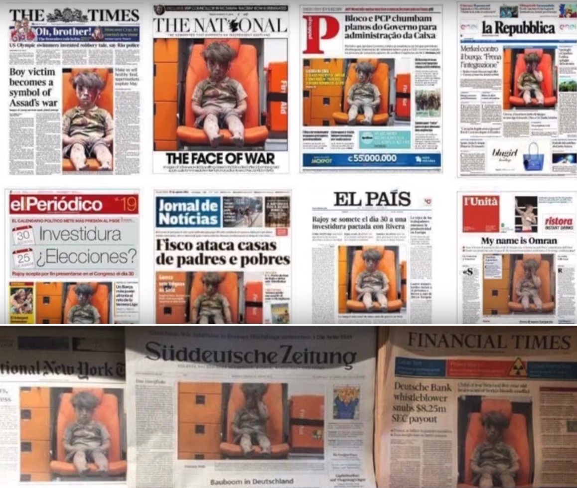 На следующий день ведущие западные издания опубликовали фотографию Омрана на первых полосах, тиражируя страдания мирных жителей (прежде всего — детей) в раздираемом войной Алеппо.