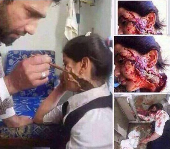 Так, еще в 2015 году в Сети появилась серия фотографий, на которой мужчина весьма искусно гримирует девушку, которая затем играет роль жертвы авианалета.