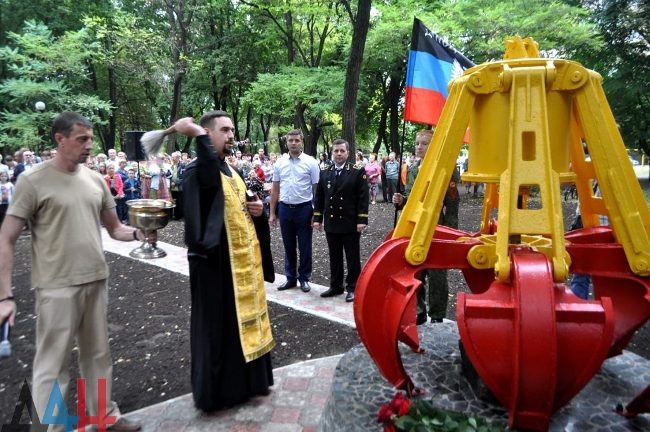 Торжественное мероприятие произошло накануне Дня шахтера, который традиционно отмечается в последнее воскресенье августа. Композиция представляет собой проходческий грейферный ковш на пьедестале (грейфер - механизм для извлечения и погрузки навалочных и штучных грузов - ред.). На памятнике выгравирована надпись: «Шахтерам и шахтостроителям Донецкой Народной Республики». Общая высота его более двух метров.