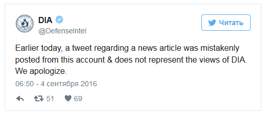 Позже твит был удален, а разведуправление извинилось за его публикацию.