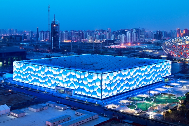 Пекинский национальный плавательный комплекс был построен к Олимпиаде-2008 на средства жителей Гонконга, Макао и Тайваня. Его возвели по проекту австралийского архитектурного бюро PTW из специального материала — тефлоновой мембраны, состоящей из наполненных воздухом ячеек. Благодаря легкости стен удалось снизить риск обрушения при сейсмической угрозе, а также решить проблему энергоснабжения.