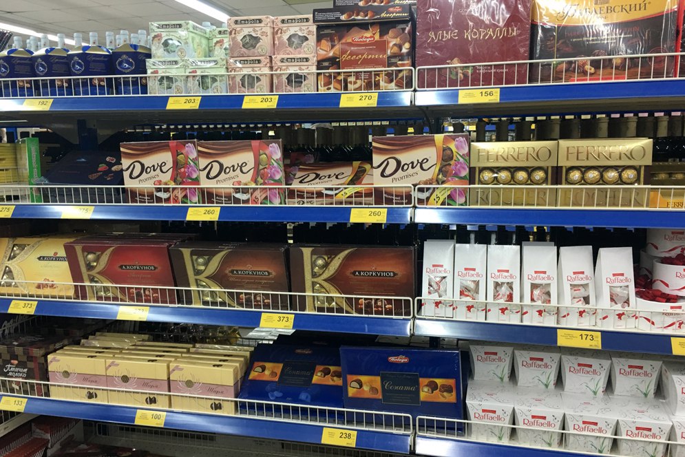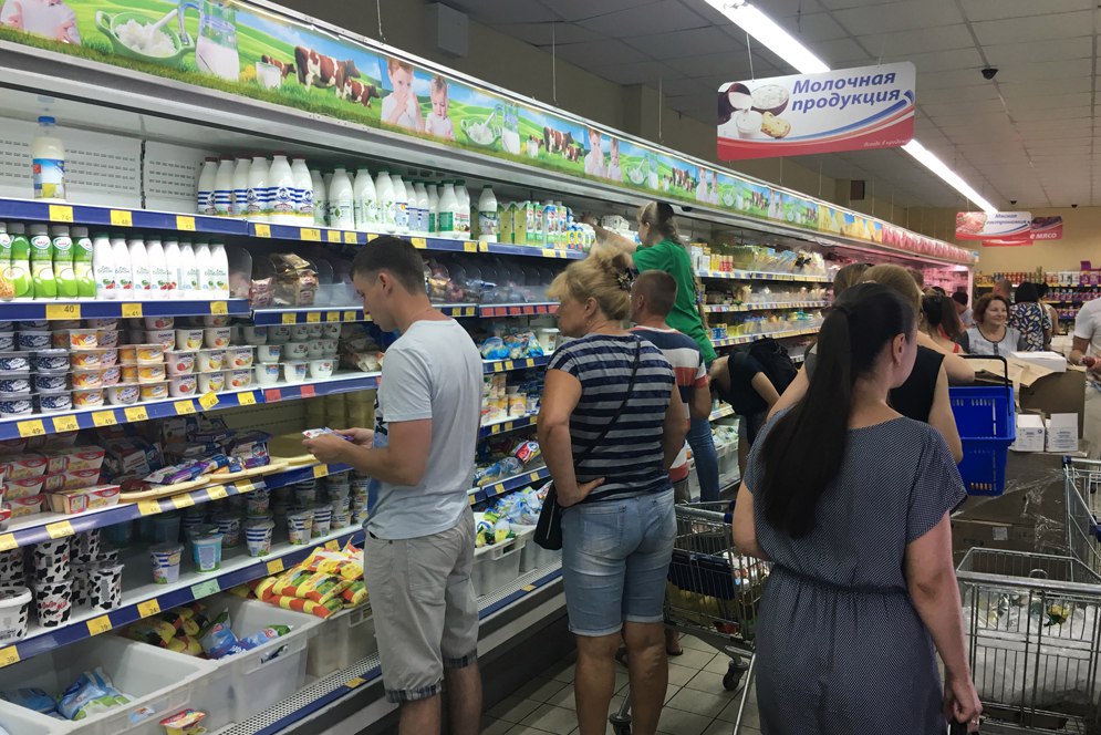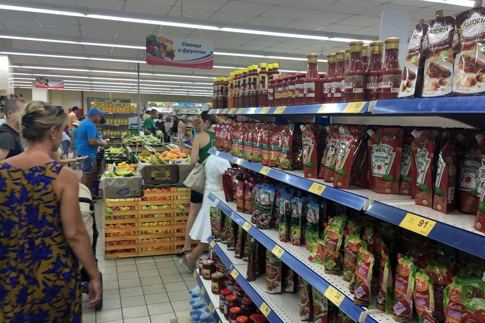 Кстати, о продуктах. Вот вам «пустые» полки крымского супермаркета.