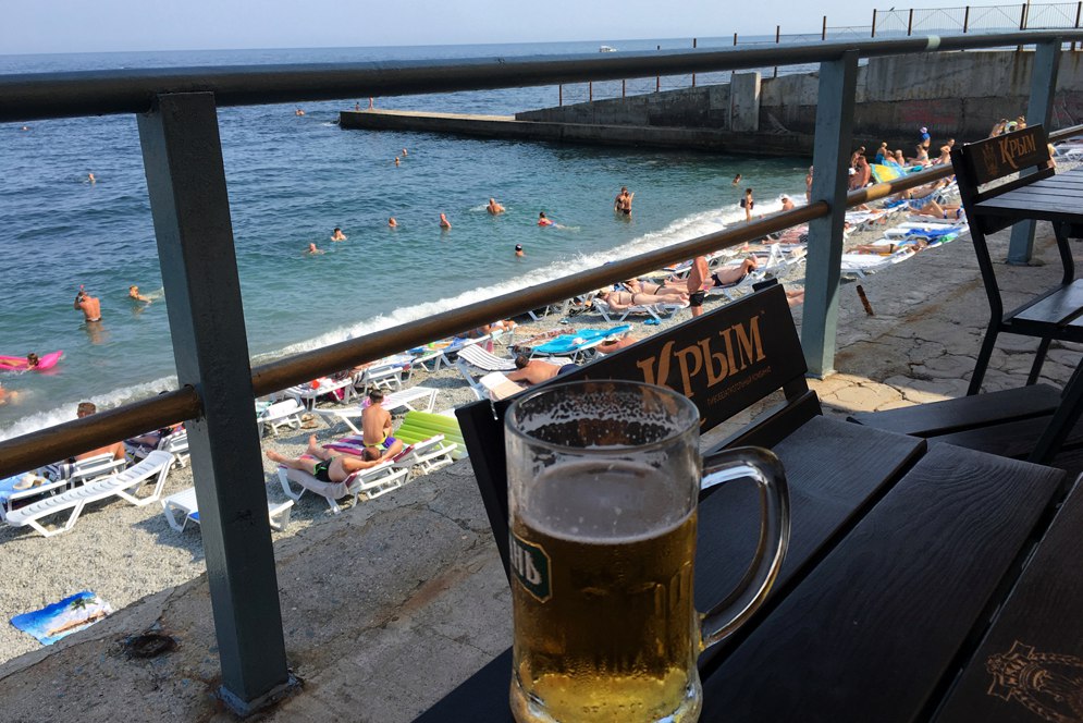 Пиво на пляже местное, вполне себе ничего, 100 рублей. В Москве в Серебряном бору, для сравнения — самое дешёвое — рублей 200–250.