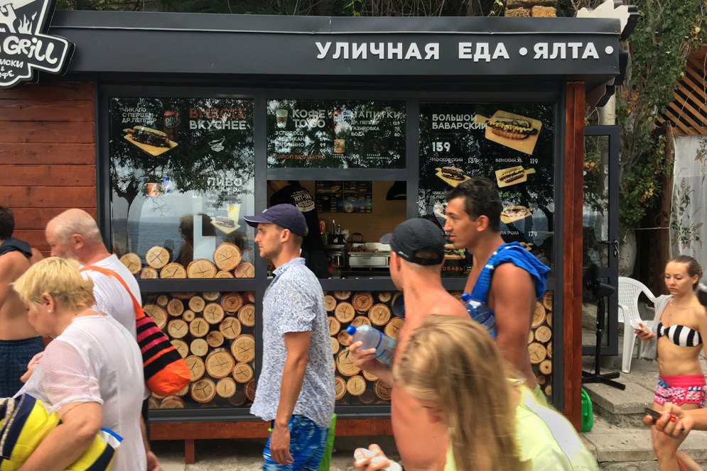 В Ялте открыли много вот таких вот уличных хот-догов. В принципе, ценник вполне как в «Стардоге» в Москве, но весьма себе неплохо, вкусно.