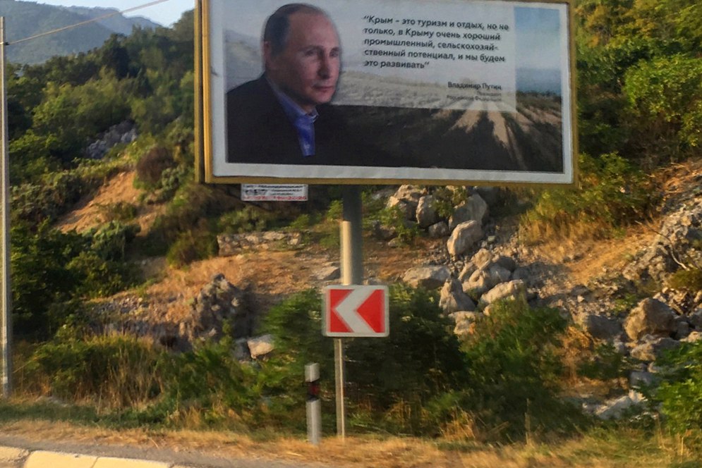 В Крыму очень любят Путина, он везде, на каждом 2–3 билборде с цитатами. Причём, Аксёнова, правительство Крыма, правительство РФ все поливают грязью и дерьмом, а вот Владимир Владимирович чист, про него плохо скажешь — на тебя ополчатся.