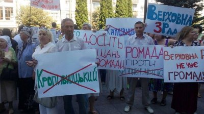В пятницу, 15 июля в Кировограде перед зданием горсовета собрался митинг жителей города против переименования областного центра в Кропивницкий. Количество митингующих 400-500 человек. Кировоградцы держат в руках флаги Украины и плакаты с надписями: "Верховная Зрада", "Власть громаду не слышит",...
