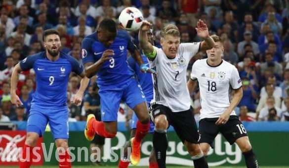 В полуфинале Евро-2016 команда Франции одержала победу в матче со сборной Германии со счетом 2:0. Победу французам принес дубль Антуана Гризманна. Таким образом сборная Франции выходит в финал, где сразится со сборной Португалии. Присоединяйтесь к «Русской Весне» в Одноклассниках, Facebook,...