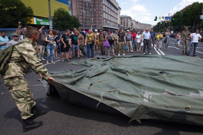 В украинской столице приверженцы арестованного экс-командира карательного батальона «Айдар» Валентина Лихолита у выезда из Печерского суда разбили большую армейскую палатку прямо на проезжей части ул. Крещатик, перегородив тем самым движение транспорта....