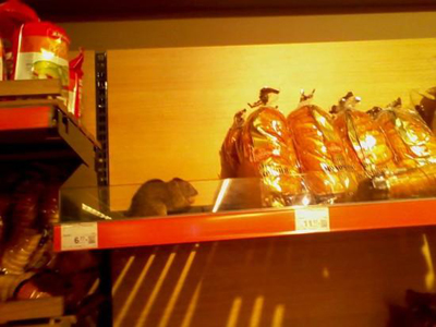 Об этом рассказала на своей странице в социальной сети одна из покупательниц. Инцидент случился около десяти вечера в магазине «Сильпо» в столице Украины на улице Мате Залки, 6. Крыса, никого не стесняясь, забралась на полку с продуктами, и начала с аппетитом поедать хлебобулочные изделия....