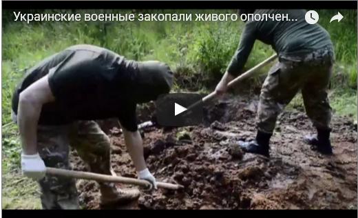 Неизвестные в масках закапывают живьем человека которого представляют как сепаратиста и ополченца ЛНР или ДНР. Живого человека они сбросили в яму, связав ему ноги скотчем. Подлинность ролика пока что не удалось проверить, так же неизвестно где и когда снято это видео....