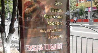 Украинские СМИ сообщают, что в центре Мариуполя - крупного промышленного города на азовском побережье, появились билборды, на которых размещена реклама антисемитской организации «Союз славян». Подобные рекламные плакаты появились по всему городу. На рекламных щитах красуются надписи «иудейская...