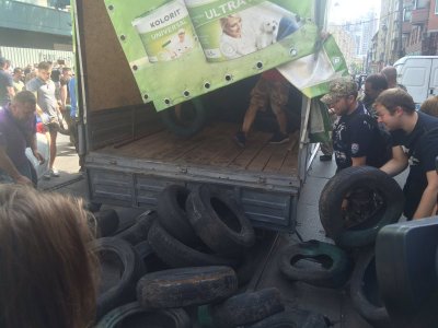 По сообщениям Укринформа «активисты» привезли и сгрузили шины у входа в главный офис «Интера». «Акция протеста у нас мирная, поэтому шины жечь не будем. Мы сложим их у входа, чтобы заблокировать вход для сотрудников «Интера», - сказал координатор акции по блокированию «Интера» Алексей Середюк....