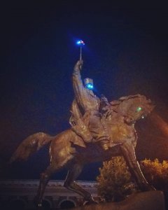 Известный конный памятник гетману Петру Сагайдачному в Киеве на Подоле оснастили ночной подсветкой. Теперь в темное время суток у самого гетмана и его коня горят глаза синим пламенем, также «полыхает» и булава, которую он держит в руках. Киевские студенты шутят, что на самом деле Сагайдачный держит...