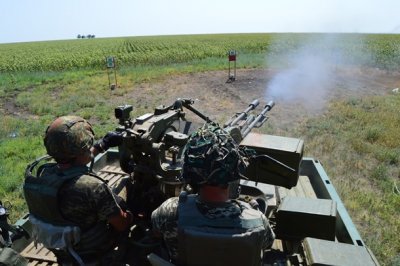 По сообщениям украинских СМИ, это военные учения погранвойск и проводятся на одном из полигонов в зоне так называемой "АТО". Учения начались 9 августа и продлятся 10 дней. Во вторник, 9 августа, по легенде отделение БТР провело высадку десанта под прикрытием техники, после чего уничтожило...