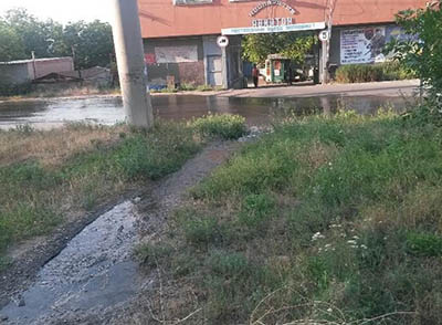 В результате очередного порыва водопровода еще ранним утром 2 августа питьевая вода хлынула на улицы города. Жители улицы Гранитной пострадали больше всех. Дома здесь буквально плавают в воде. Далее поток бежит в сторону реки Кальчик через кооператив "Авиатор"....